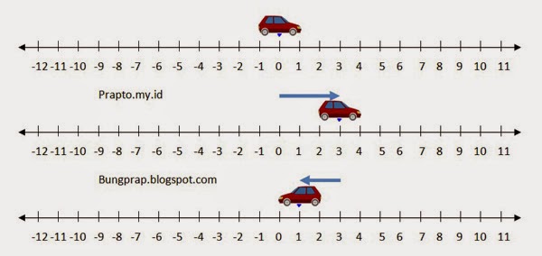 - mobil bergerak MAJU tiga langkah pada garis bilangan dan berhenti di angka 3 (berlaku aturan 2)